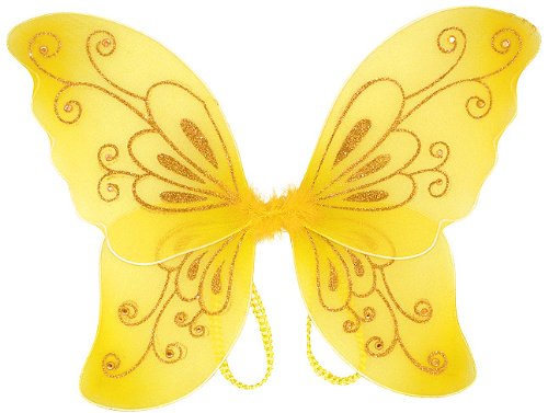 BR These stunning costume wings are perfect for a fairy or pixie costume Also great for fun pictures We have yellow blue pink purple white and fuchsia availableBRBR Golden yellow fairy wings with beautiful sparkle design Worn with satin straps over the shoulders like a backpack Wing Read More..